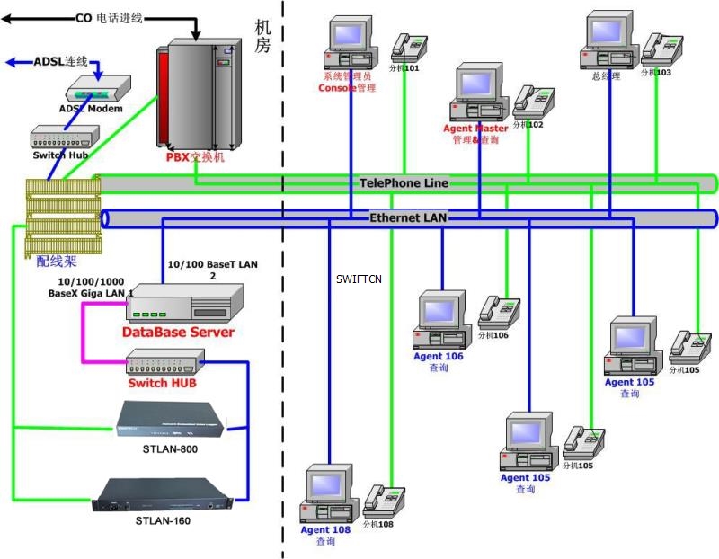 錄音存儲(chǔ)服務(wù)器與STLAN硬件通過標(biāo)準(zhǔn)TCP/IP協(xié)議網(wǎng)絡(luò)相連,因此不受限于服務(wù)器存放位置,錄音設(shè)備可以放在任何有網(wǎng)絡(luò)接口的地方。