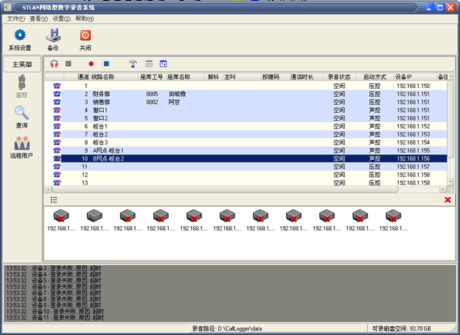 按照?qǐng)D一方式將STLAN物理連線連接好,錄音時(shí),STLAN將數(shù)據(jù)實(shí)時(shí)傳輸至錄音服務(wù)器,錄音服務(wù)器用來運(yùn)行錄音程序、管理錄音數(shù)據(jù)??蛻舳?web軟件為選件,需要另外收費(fèi))可以通過連接局域網(wǎng)的計(jì)算機(jī)對(duì)監(jiān)控各通道的情況,也可以查詢錄音數(shù)據(jù),聽取、下載錄音文件。